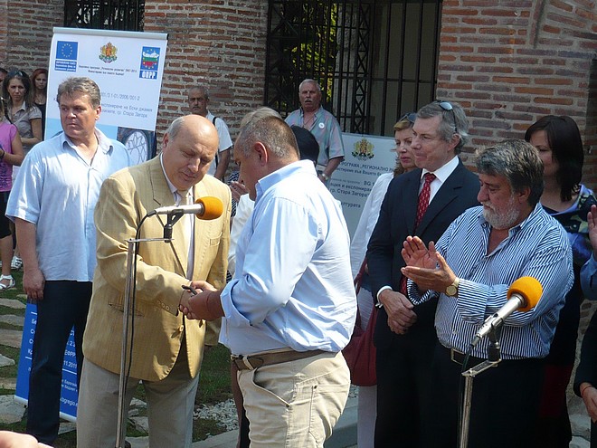 Кметът на Община Стара Загора проф.Светлин Танчев, министър-председателят Бойко Борисов, министрите Лиляна Павлова и Вежди Рашидов прерязаха лентата на възродената за нов живот като Музей на религиите Ески Джамия в центъра на Стара Загора. На церемония днес бе отбелязан успешният край на проекта „Консервация, реставрация и експониране на Ески джамия и създаване на музей на религиите” на стойност 2.4 млн.лв., изпълнен по Схема за безвъзмездна финансова помощ: BG 161PO 001/3.1-01/2008 ”Подкрепа за паметници на културата с национално и световно значение, допринасящи за устойчивото развитие на туризма” на Оперативна програма „Регионално развитие”2007 – 2013.