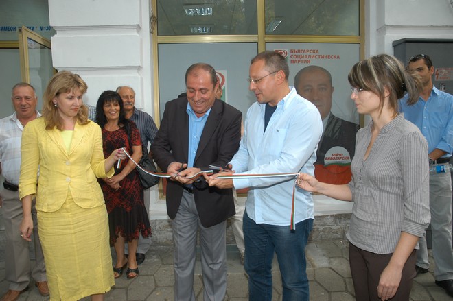 Лентата на предизборния клуб прерязаха Сергей Станишев и кандидат-кметът на БСП доц.Бойчо Биволарски.