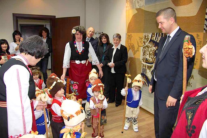„Колкото пилци по планината, толкоз здраве в общината, колкото шума в гората, толкоз берекет в таз община”, наричаха малките гости на кмета, председателя на Общински съвет Емил Христов, зам. кмета Иванка Сотирова и секретаря на общината Цена Велкова.