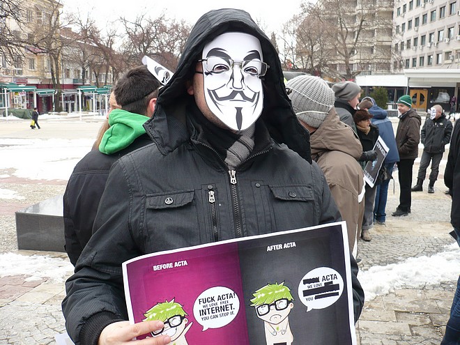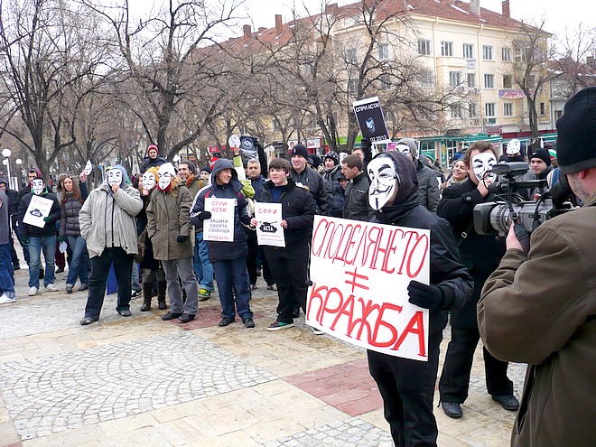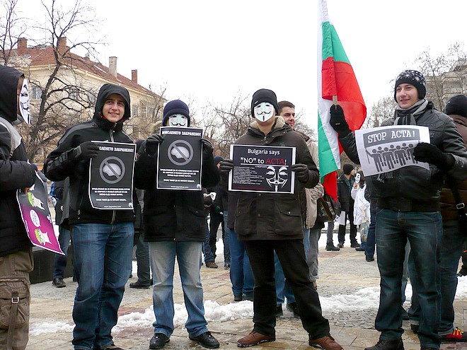 Над 100 млади старозагорци – ученици и студенти, се събраха в 11 часа тази сутрин пред сградата на общината на протест срещу приемането на търговското споразумение за борба с фалшификациите АСТА. Много от тях бяха сложили на лицата си станалата популярна маска-символ на съпротивата срещу АСТА, други бяха написали на ръка лозунги, трети развяваха националния флаг, а всички заедно скандираха “Долу АСТА!”. Така те станаха част от общоевропейското движение на интернет потребителите, настояващи в над 150 града в Европа днес световната мрежа да остане свободна за ползване и отричащи тоталния й контрол.