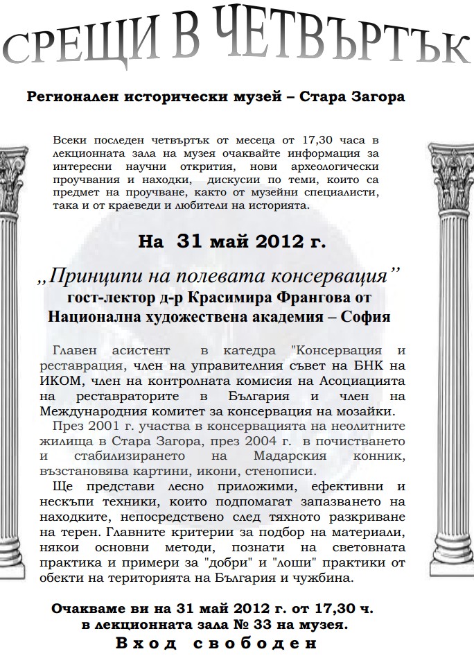 „Срещи в четвъртък“ в РИМ: Нова лекция за полевата консервация на артефакти