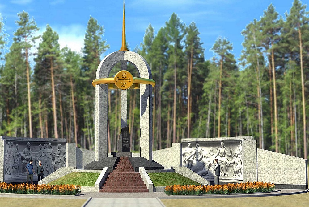 Мемориалният комплекс се състои от централна композиция и фонова информационна стена.