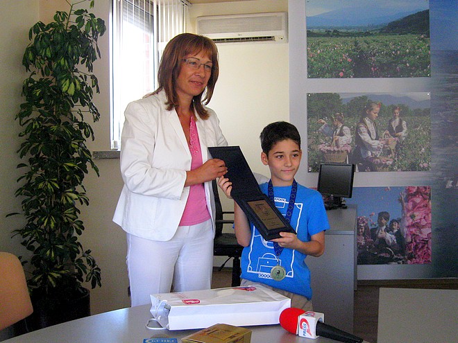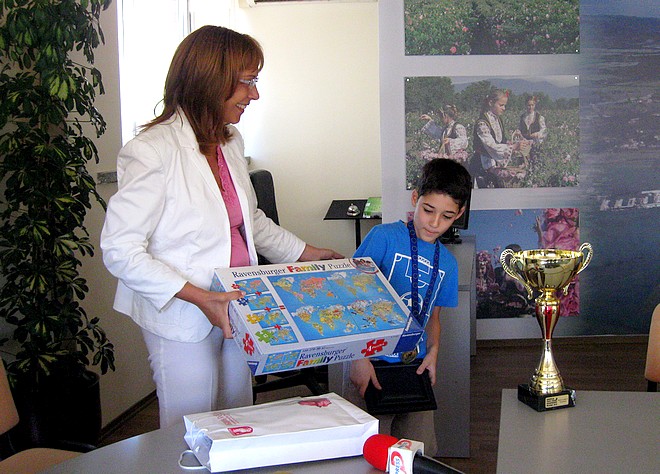 Кметът на община Казанлък Галина Стоянова и председателят на Общинския съвет Николай Златанов се срещнаха днес със европейския шампион по шахмат Цветан Стоянов, за да го поздравят лично за неговата голяма победа на приключилото само преди няколко дни Европейско първенство по шахмат за деца и подрастващи до 18-годишна възраст. Те обявиха готовността на Община Казанлък да подкрепи финансово талантливото момче за участието му в следващото голямо състезание до края на годината. Младата шахматна гордост на Казанлък ще получи 1000 лева по Програмата за даровити деца на Общината. Средствата ще бъдат предоставени на Цветан Стоянов за участието му на Световното първенство по шахмат за деца, което ще се проведе в началото на ноември в Марибор, Словения.
