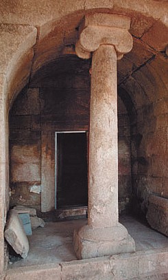Дромосът е широк и е бил покрит с керемиден покрив. Първата камера е засводена, като в центъра е издигната колона с йонийски капител. Изцяло измазана в бяло. Тук са били принесени в жертва четири коня и две кучета.