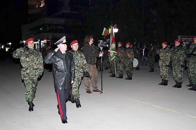 Под звуците на музиката на Военния духов оркестър на площада пред общината заеха мястото си шест представителни роти на Втора механизирана бригада. Там пристигна и факелното шествие на ученици от старозагорските училища, което тръгна в 18,30 ч. от парк „Александър Стамболийски”.