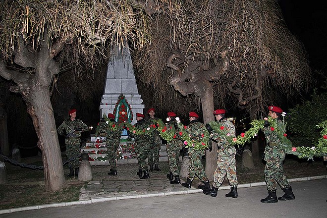 На фона на траурния марш на Българската войска „Покойници“, войници поднесоха гирлянда на славата на Паметника на защитницте на Стара Загора в парк „5 октомври“.