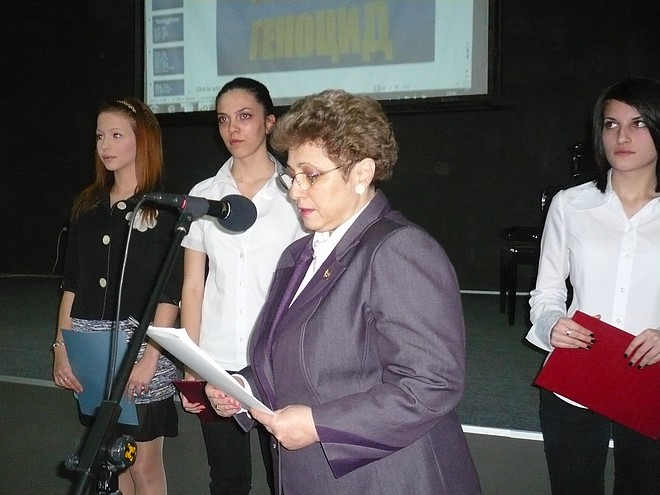 „Спасяването на българските евреи е прецедент, който няма равен на себе си. Всяка година на 10 март евреите в България си спомнят с дълбока признателност събитията от 1943 г., когато българският народ е проявил уникално съпричастие и кураж. Основно значение за отмяната на опита за депортация на евреите изиграва бързото и решително действие на група от 42-ма депутати, начело с подпредседателя на Народното събрание Димитър Пешев, които се обявяват срещу случващото се, като на 17 март внасят подписка в Народното събрание и бламират антисемитските действия на прохитлеристкото правителство. Лекарският съюз, Съюзът на писателите, спортни дружества, Съюзът на юристите и множество други професионални съюзи също се противопоставят. Българската православна църква реагира особено последователно, като окуражава местното население – както евреите, така и множеството българи, несъгласни с политиката на правителството за разделение на нацията, с мотива, че гоненията на евреите са удар по самата България“, каза в словото си пред учениците Красимира Готева, председател на РОЕ „Шалом“ – Стара Загора (на първата снимка).