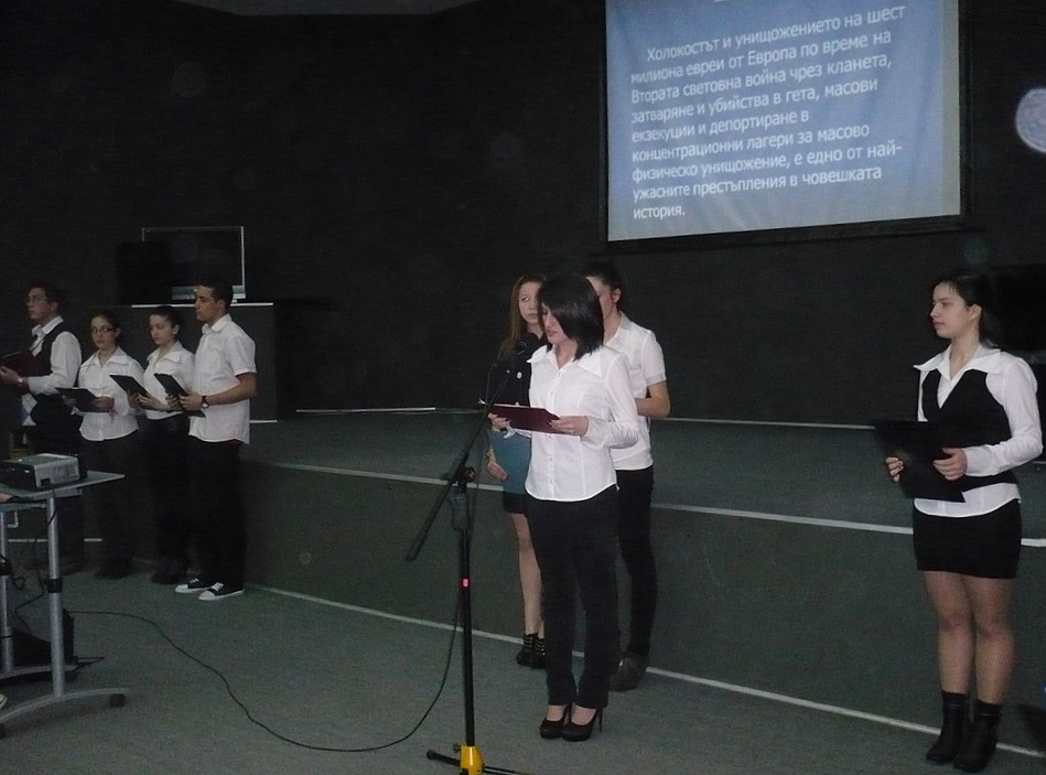 В чест на годишнината Регионалната организация на евреите „Шалом“ в Стара Загора и ученици от проекта „Успех“ на ГПЧЕ „Ромен Ролан“ организираха снощи със съдействието на Община Стара Загора възпоменателна вечер в конферентната зала на Регионалната библиотека „Захарий Княжески“, в чието фоайе е подредена изложба с фотоси за ужасите на Холокоста. В едночасов „открит урок“ пред старозагорската общественост учениците припомниха многобройните жертви, погубени в нацистките концлагери в годините на Втората световна война, но и щастливото избавление от нацистката машина на над 50-те хиляди евреи у нас, спасени с намесата на българската общественост. Учениците проследиха събитията от онези години в Стара Загора (изселването на евреите от града през 1943-1944 г.) и представиха филмирани спомени на участници в тях.