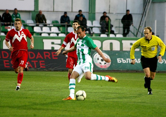 Пак Мартинс получи топката от Дончо Атанасов в 30-ата минута и стреля добре, но кълбото мина над вратата.