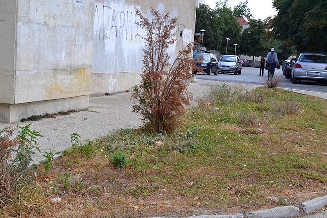 Въпреки желанието на Общината за увеличаване на зелените площи в Казанлък, тази градинка на юг от Универсалния магазин така и не можа да просъществува – тук от неколкократно засажданите дръвчета туя остана само едно изсъхнало, а озеленители от общинското предприятие „Комунална дейност и поддръжка на инфраструктурата“ откриха в корените му изсипана готварска сол