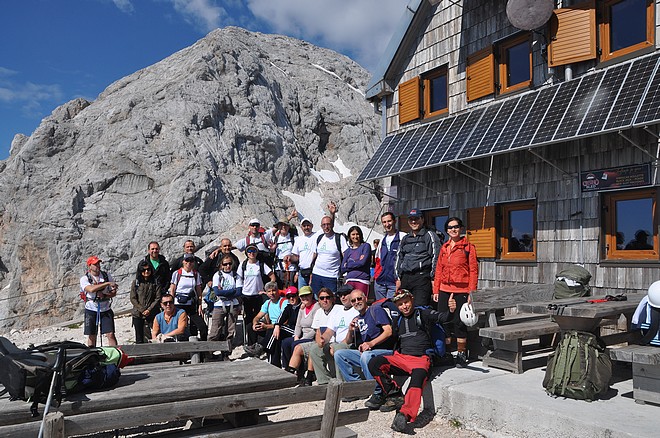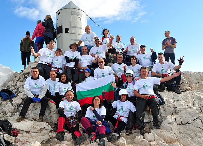 На другата сутрин в 6:20 с ленти и карабинери 23 туристи потеглихме за върха по много добре маркирана и обезопасена пътека тип ”Виа Ферата”. Времето тук се променя много бързо и не всеки ден е възможно изкачване. В деня на пристигането ни целият ден е валяло и нито една от групите на хижата не е успяла да направи изкачване. За наша радост имахме късмет, времето беше ясно и се очертаваше да не вали. Духаше само силен вятър. На места трябваше да се разминаваме със слизащи вече от върха чуждестранни туристи тръгнали почти по тъмно към върха. Първите от нашата група излязоха на върха около 7:30, а след 15-на минути всички 23 се събрахме на „покрива” на Словения. Гледките от върха са уникални и незабравими . Всеки изпита истинско удовлетворение от преодолените трудности. Направихме си много снимки за спомен. Заредихме се с положителни емоции и около 8:30 всички поехме по обратния път надолу. На хижа „Водников дом” си починахме малко, направихме си снимки и в 10:00 поехме надолу към паркинга, където трябваше да ни чака автобуса. Понеже времето беше хубаво можахме да се насладим на много богатата флора на Алпите в Словения. Видяхме и снимахме и алпийски еделвайси.