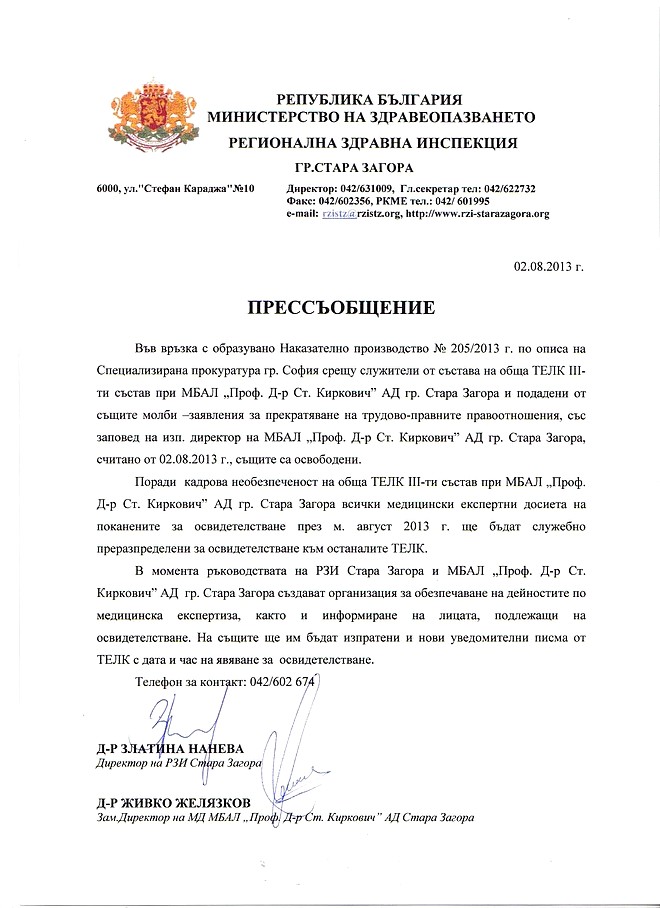 Уволниха корумпираните служители на ТЕЛК III-ти състав към МБАЛ „Киркович“
