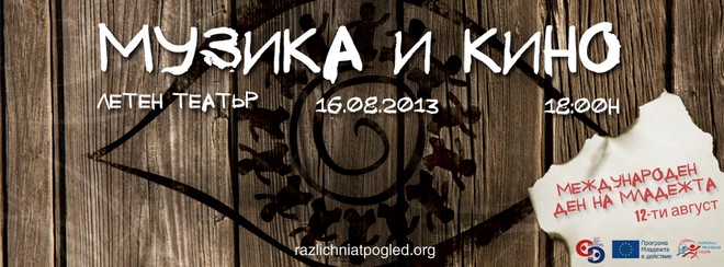 Първото публично събитие по проекта е по повод Международния ден на младежта, 12-ти август, но ще се проведе на 16-ти август, петък, с цел завършване на работната седмица и привличане на повече младежи. „МУЗИКА И КИНО на Летния театър“ ще започне от 18:00 в Летния театър на парк „М. Кусев“ (Аязмото). Ще включва отворено прослушване на младежки музикални и танцови групи за участие в ЕМФИ „Различният поглед 2013“ през септември, представяне на български и чуждестранни доброволци, демонстрация на фокуси и лятно кино. По предложение на младежи от инициативната група по проекта като финал на вечерта ще бъдат излъчени няколко серии от любимото руско анимационно филмче „Ну, погоди!“, което не е особено познато сред младите днес.