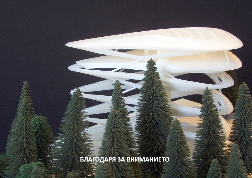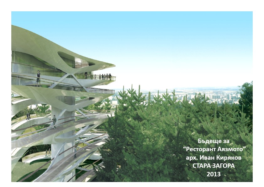 В предишната ни публикация снощи разказахме за общественото обсъждане на бъдещето на ресторант „Аязмото“. Сега публикуваме ескизите на арх.Иван Киряков за предлаганата от него наблюдателна кула с компютърно разработена конструкция, които той бе така любезен да ни изпрати. Кулата може да се изгради като продължение на сградата на ресторанта във височина, обясни идеята си младият архитект.: