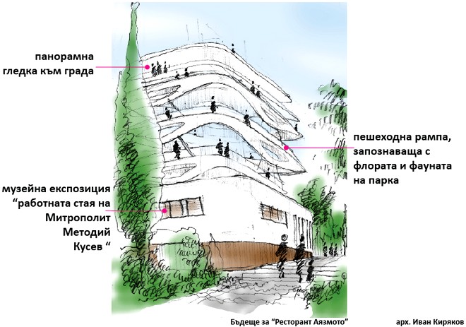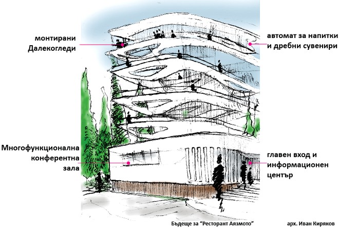 Ресторант „Аязмото“ – надграден с панорамна кула: Ескизите по проекта на арх. Иван Киряков