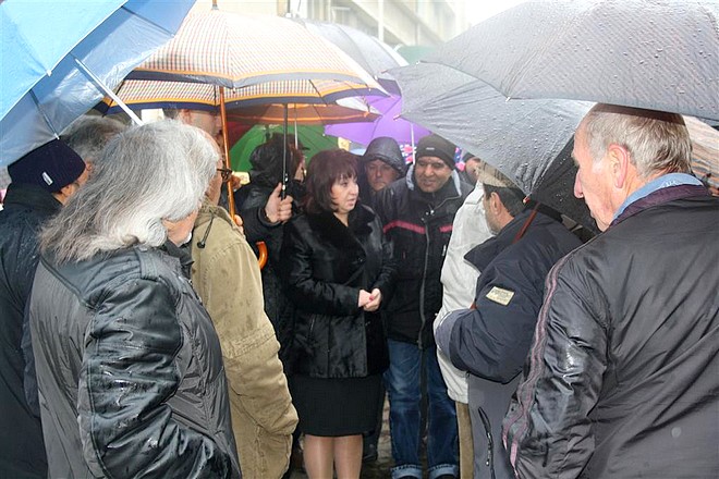 Живка Аладжова пристигна в 7,30 часа днес на поредния протест, организиран от работниците. „Моят ангажимент като представител на държавата е свързан с недопускане на напрежение в дружеството и затова съм насочила усилията си към балансиране на взаимоотношенията между Вас и работниците – обърна се Областният управител към Сабин Спахиев. – Разбирам, че проблемите са натрупани през годините, но Вие трябва да имате диалог с хората и открито да им кажете какви са проблемите на дружеството“.