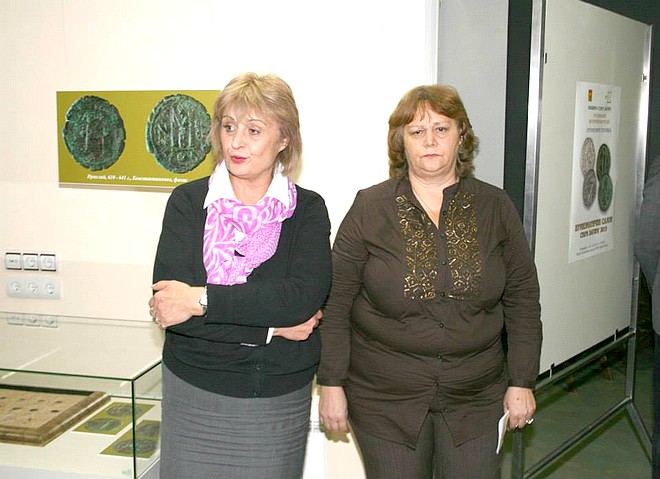 Изложбата е организирана от уредника в отдел Нумизматика на РИМ-Стара Загора д-р Мариана Минкова (вдясно на втората снимка).