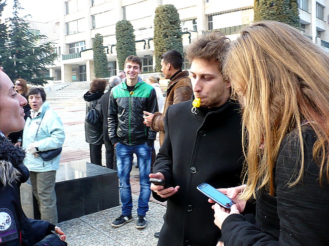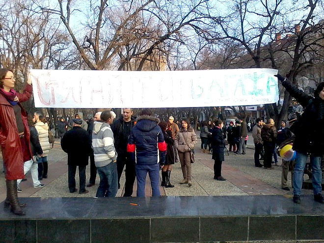 На протеста срещу правителството на Пламен Орешарски от 15 часа следобед се събраха стотина човека с няколко ръчно написани плаката. От обществените личности край „Феникса“ се забелязваше ексдепутатът земеделец Моньо Христов. Част от студентите бяха същите, които протестираха и през февруари срещу високите цени на тока. Хубав голдън ретривър отбиваше политическата си повинност с надпис „Оставка“ на гърба, а събитието се озвучаваше с 3-4 яко надувани съдийски свирки. Както и на предишни протести, се различаваха две основни групи – на същинските протестиращи в центъра и на кибиците по-отстрани, които гледаха какво ще стане.