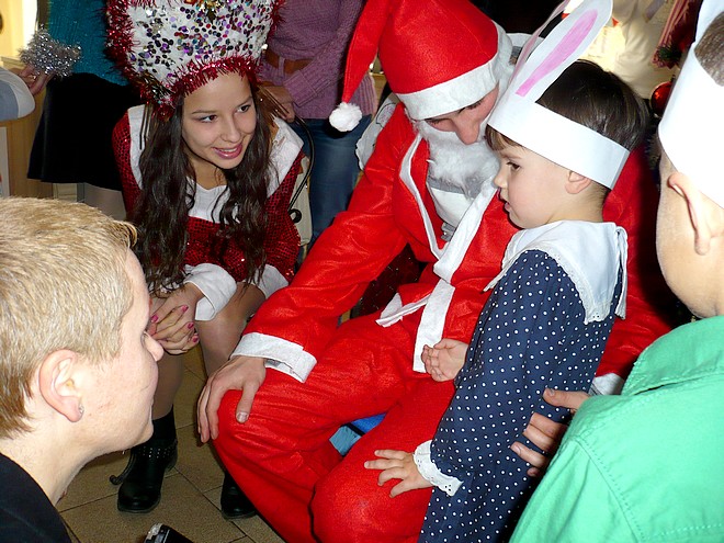Както се полага в подобни случаи, малчуганите получиха по нещо вкусно за хапване, подскачаха като зайчета, а накрая пяха и декламираха стихчета, за да получат от белобрадия старец и неговата свита мечтания подарък.