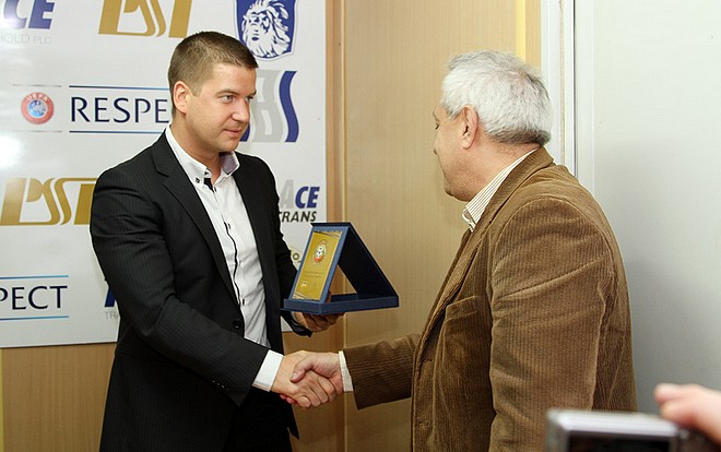 Кметът на Стара Загора Живко Тодоров получи плакет от президента на Българския футболен съюз, който му беше връчен от зам.-изпълнителния директор на БФС Антон Попов. $Благодарение на такива хора като вас българският футбол все още е жив$, каза Попов от името на Борислав Михайлов.