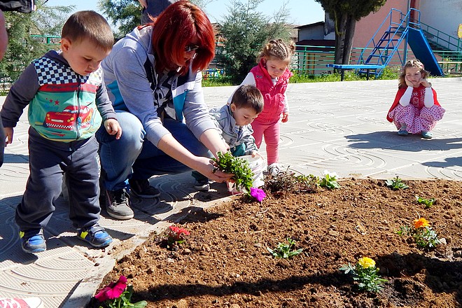 Пространството пред детската площадка на с. Малка Верея „разцъфна“ с многоцветни петунии, ярки турти и красиви рози. Над 20 деца и възрастни се включиха в озеленителната кампания, която се проведе на 22 март, по повод началото на календарната пролет.
