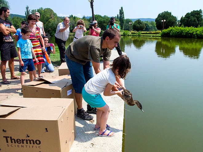 20-те млади патици, освободени днес в езеро „Загорка“, са излюпени и отглеждани досега в Спасителния център за диви животни.