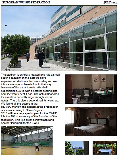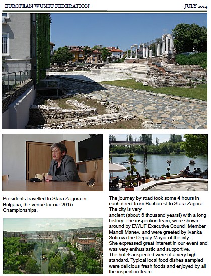В последния бюлетин на Европейската Ушу* Федерация (ЕУФ) широко място е отделено на инспекционната визита на президента (Реймънд Уйлям Смит) и вицепрезидента й в Стара Загора, където през 2015 г. ще се проведе следващото Европейско първенство по Ушу.