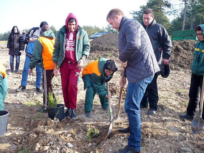 В залесяването на подравнения склон тази сутрин се включи кметът на община Стара Загора Живко Тодоров и неговите заместници Йордан Николов и Иванка Сотирова, както и членове на Общинския съвет, сред които беше и спряганият за бъдещ областен управител Георги Ранов.
