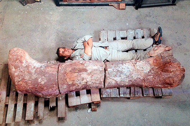 На снимката - кост от най-големия, както уверяват палеонтолозите, динозавър, живял преди 90 милиона години. На височина той е достигал 9 метра