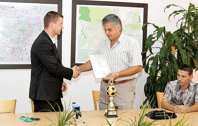 Представителният отбор по футбол на Областната дирекция на МВР в Стара Загора ще получи нови екипи и ще има възможност да провежда целогодишни тренировки на спортните бази на общината. Това обеща днес кметът Живко Тодоров и увери състезателите, че общината ще продължи да помага на отбора. От името на ръководството на ОД МВР те връчиха на градоначалника благодарствена грамота, по повод завоюваната първа шампионска титла в първенството по футбол за служители на МВР.