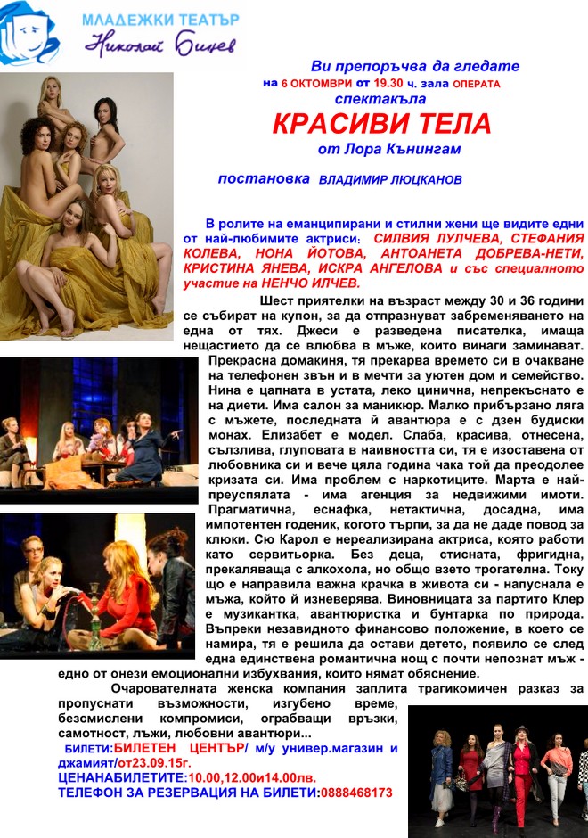 Силвия Лулчева, Стефания Колева, Нона Йотова, Нети, Кристина Янева, Искра Ангелова и Ненчо Илчев – в „Красиви тела“ на 6 октомври в Стара Загора