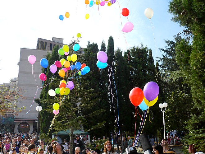 В небето след това полетяха десетки разноцветни балони и гълъби, символ на мирното развитие и разцвет на Стара Загора.