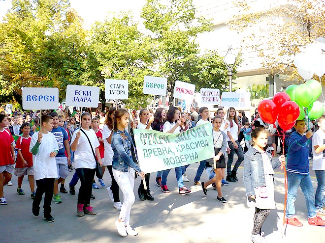 По булеварда дефилираха ученици от всички старозагорски училища, представители на културните институции и неправителствени организации. По традиция шествието завърши с народни хора пред сградата на Областната администрация.