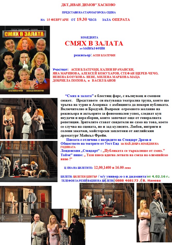 На 15 февруари в Стара Загора – комедията „Смях в залата“ с Асен Блатечки, Калин Врачански и др.