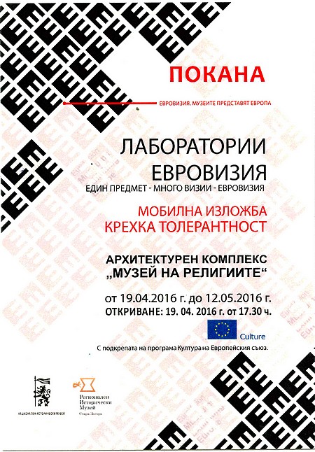 Изложбата „Крехка толерантност“, подготвена от Националния исторически музей – София, е акцентът в Лабораториите „ЕвроВизия“, провеждани в страните-участнички в европейския проект ЕМЕЕ – Германия, Словения, Италия, Португалия, Франция, Австрия и България.