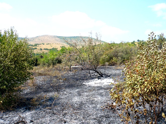 250 декара градини с лозя, череши, круши, сливи, орехи и други фиданки, много от които изоставени, както и сухи треви и храсти, изгоряха в събота, 30 юли, в местността „Черния мост“ край Стара Загора.