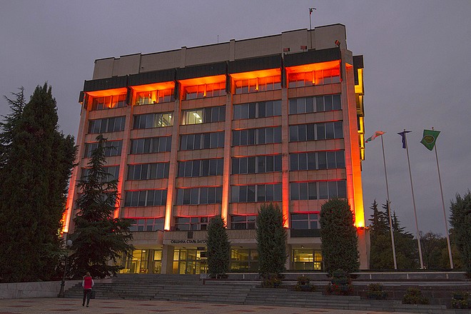 Административната сграда на Община Стара Загора светна в розово, по повод кампанията за отбелязване на Световния ден за борба с рака на гърдата – 19-ти октомври.