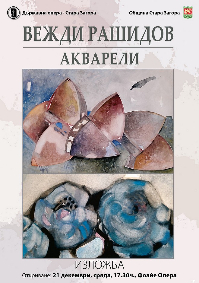 По покана на Община Стара Загора Вежди Рашидов ще представи свои творби в града под липите. Ценителите ще могат да видят над 35 произведения, експонирани в самостоятелната изложба, озаглавена „Акварели”. Откриването ще бъде на 21 декември от 17.30 часа във фоайето на старозагорската опера.