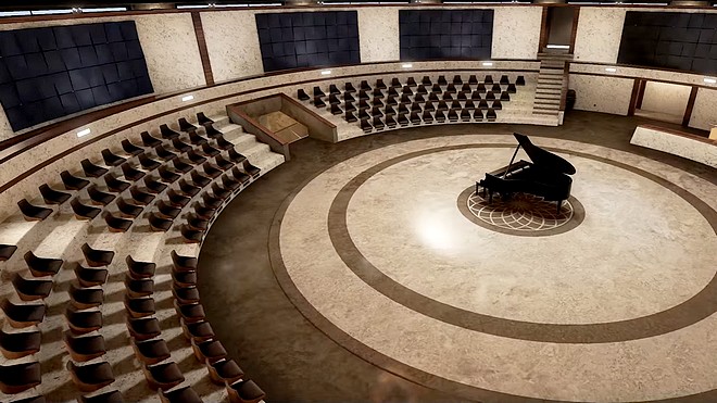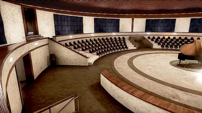 Второто ниво отвежда с асансьор в театрална зала с роял в центъра, а от прозорците на чинията се открива реална гледка с мащаб 16 на 16 километра. В коридорите са поместени картини от забележителности в България, а с едно кликване всеки „посетител“ може да научи повече за тях.