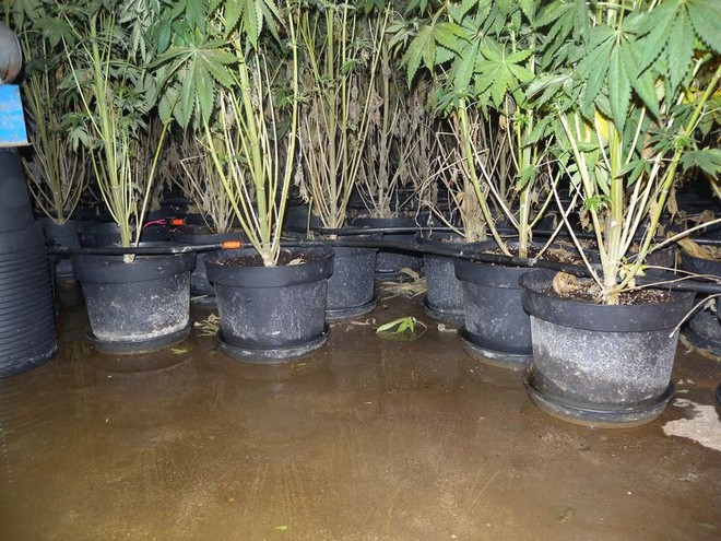 При последвалите процесуално-следствени действия – претърсване и изземване, в хале с размери 12 на 10 метра, без прозорци, е открита изградена оранжерия за отглеждане на големи количества канабис. Намерени са и са иззети 408 саксии със засети стръкове канабис, с височина от 170-180 см., 37 отоплителни лампи заедно с трансформатори и ел. оборудването към тях, 5 вентилатора, климатик, 2 уреда за отчитане на температурата и влажността в помещението, напоителна система за капково напояване и др. Намерен е и иззет и найлонов чувал, пълен със зелена тревиста маса – листа от канабис.
