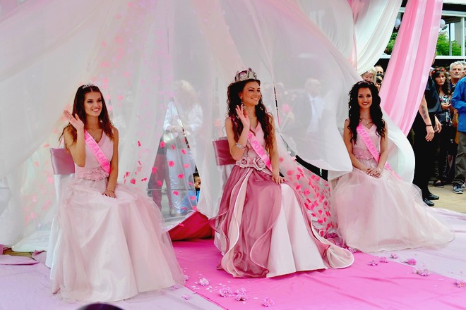 Кметът на Казанлък Галина Стоянова посрещна официалните гости в Общината, облечена в народна носия. Оттам всички се отправиха към розова градина край с. Крън, където зрителите имаха възможност да наблюдават ритуала розобер, пресъздаден от фолклорни състави.