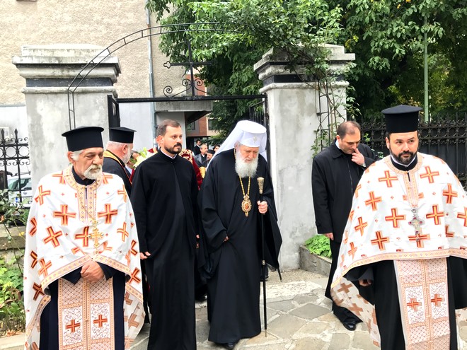 Българският патриарх Неофит отслужи заупокойна молитва на гроба на приснопаметния старозагорски владика Панкратий, който се намира в двора на църквата.